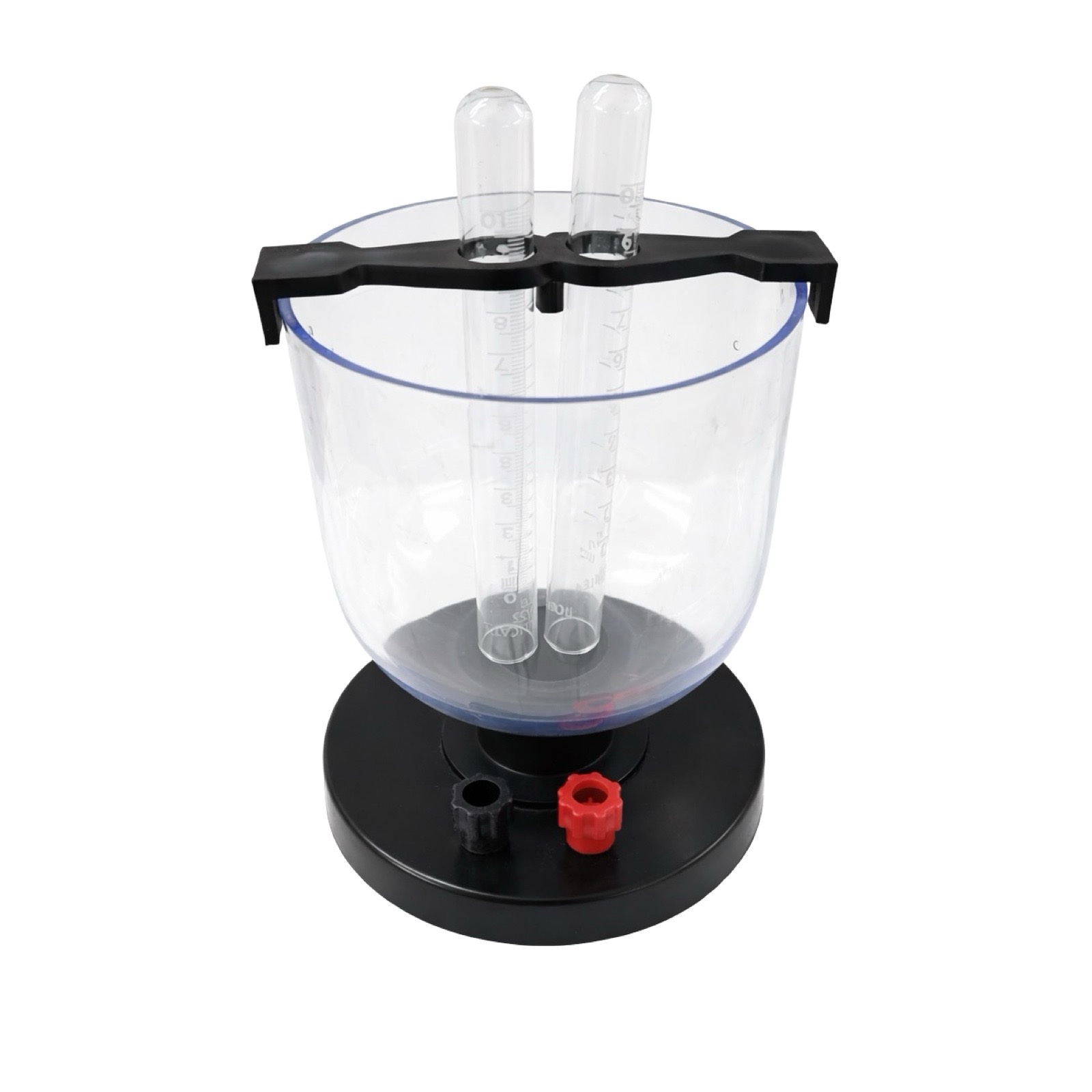 This model is made of transparent acrylic, allowing students to see the reaction process clearly. Two electrodes are immersed in water, and gas collection tubes are provided so the gases formed during electrolysis can be observed and compared.