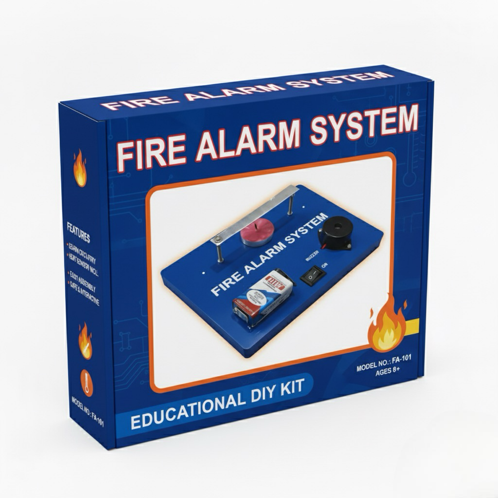 The Fire Alarm Model is a hands-on demonstration kit that shows how a bimetallic strip bends when heated, completing an electrical circuit to activate a buzzer. It provides a clear and engaging way for students to understand the science behind fire detection systems.