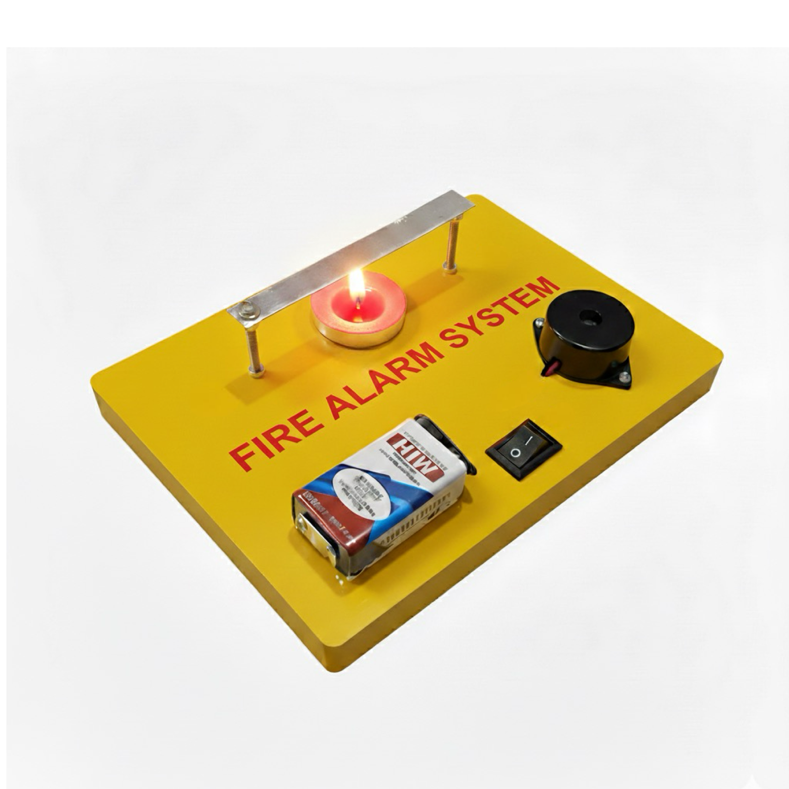 The Fire Alarm Model is a simple yet effective educational tool that demonstrates the working principle of fire alarms using a bimetallic strip. Mounted on a durable plastic base, it includes a buzzer, 9V battery, bimetallic strip, and candle to show how heat triggers the alarm system. This model is ideal for school labs, STEM demonstrations, and safety education programs.
