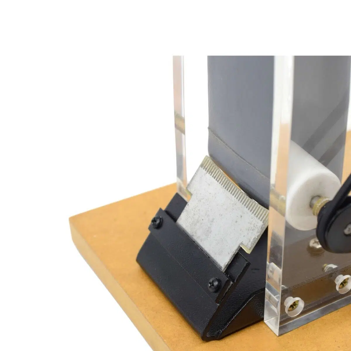 The Hand Driven Van de Graaff generator is an electrostatic generator that produces high voltage through the process of charging a metal sphere. The fundamental mechanism revolves around a moving belt, usually made of rubber, which transports electric charge from a low voltage source to the sphere. As the belt moves, it rubs against a comb-like structure that helps to transfer electrons to the belt, effectively charging it. When the belt reaches the metal sphere at the top, it transfers the accumulated charge, causing the sphere to become highly charged and build a substantial electric potential.